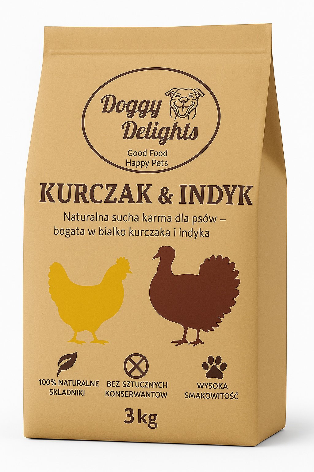 Doggy Delights Kurczak i Indyk – Naturalna sucha karma dla psów